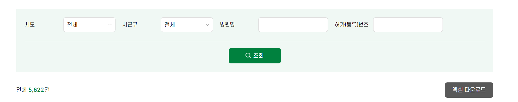 *만약 병원명(업체명)이 검색이 안될 경우에는 해당지역 조건으로 검색하거나 인허가된 명칭으로 검색해보시기 바랍니다.